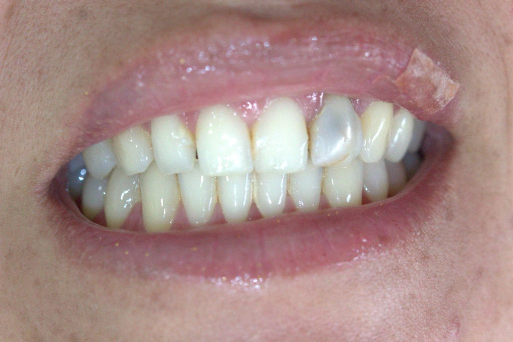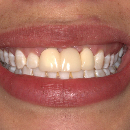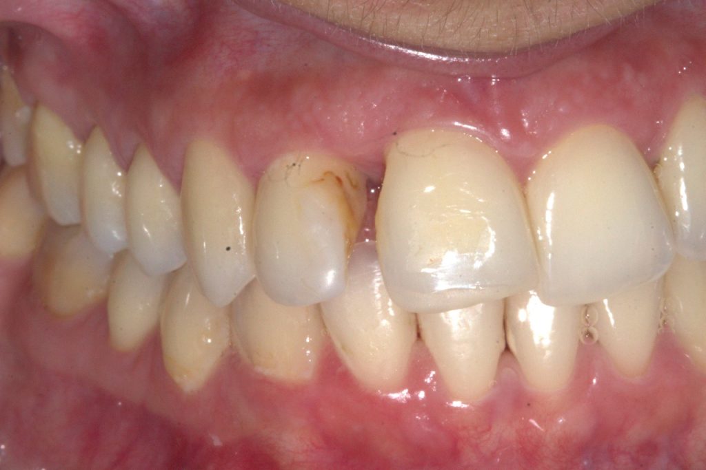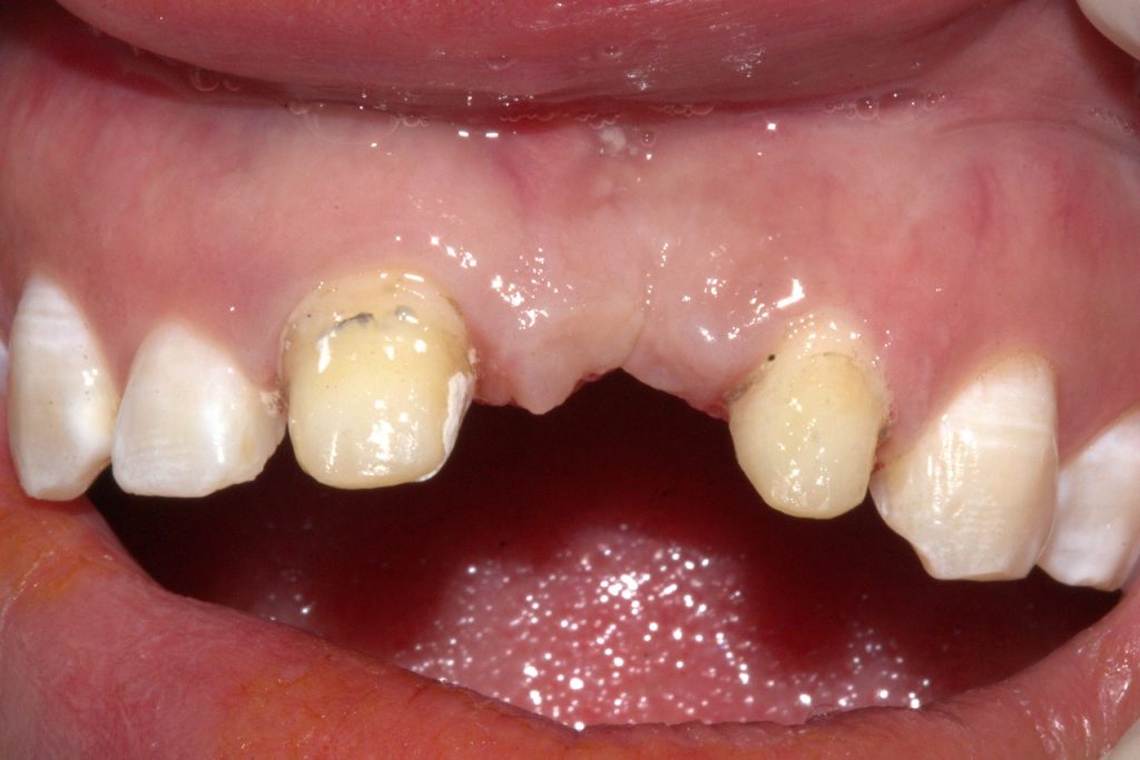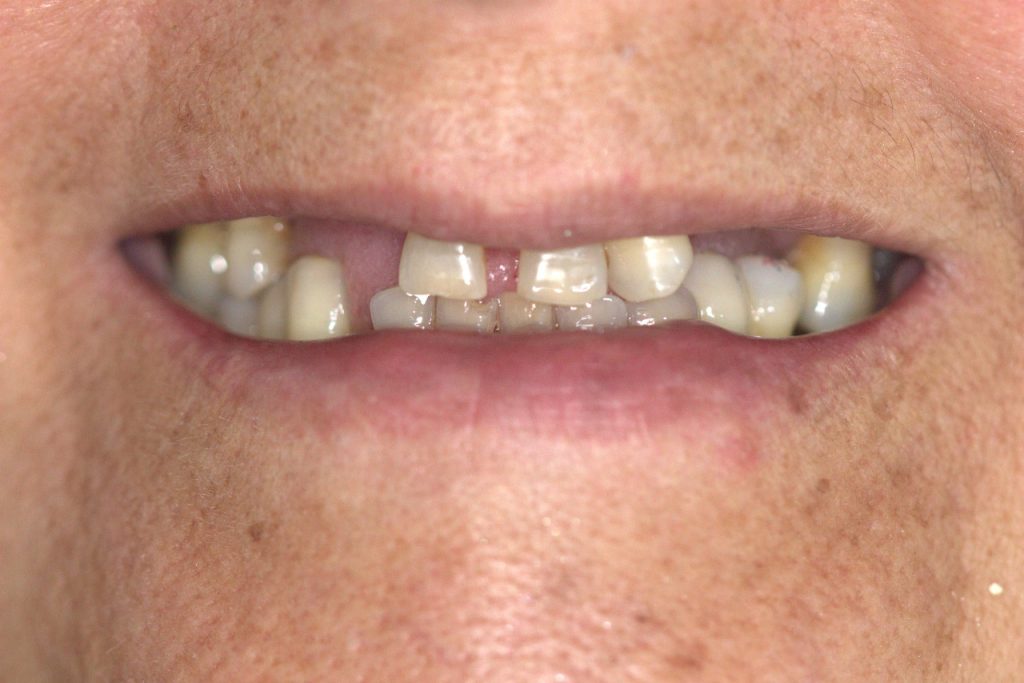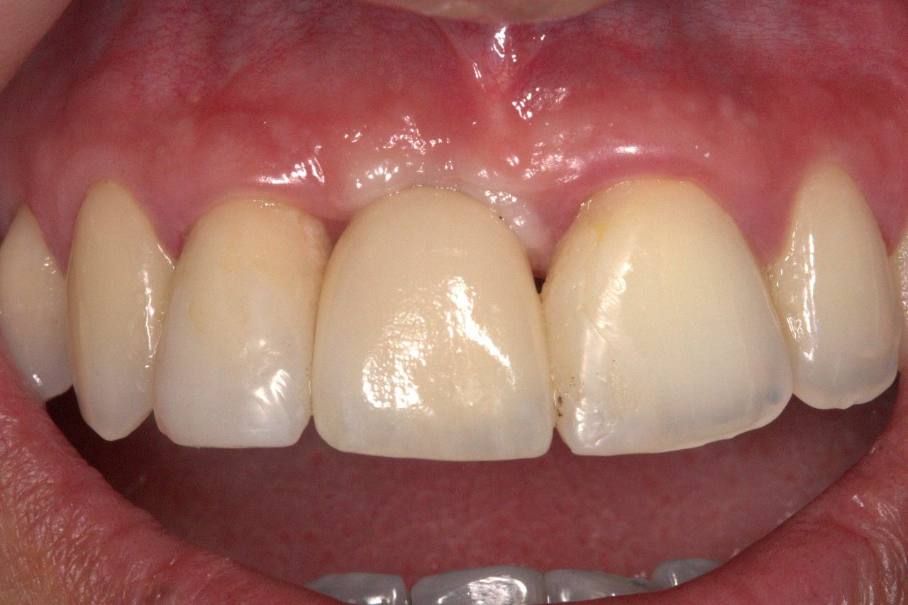 Paciente que asistió a consulta por perdida ósea y movilidad del diente 11, en donde se realiza una regeneración ósea, 6 meses antes a la colocación de implantes y 4 meses después se rehabilitó con una corona cemento atornillada en zirconio.