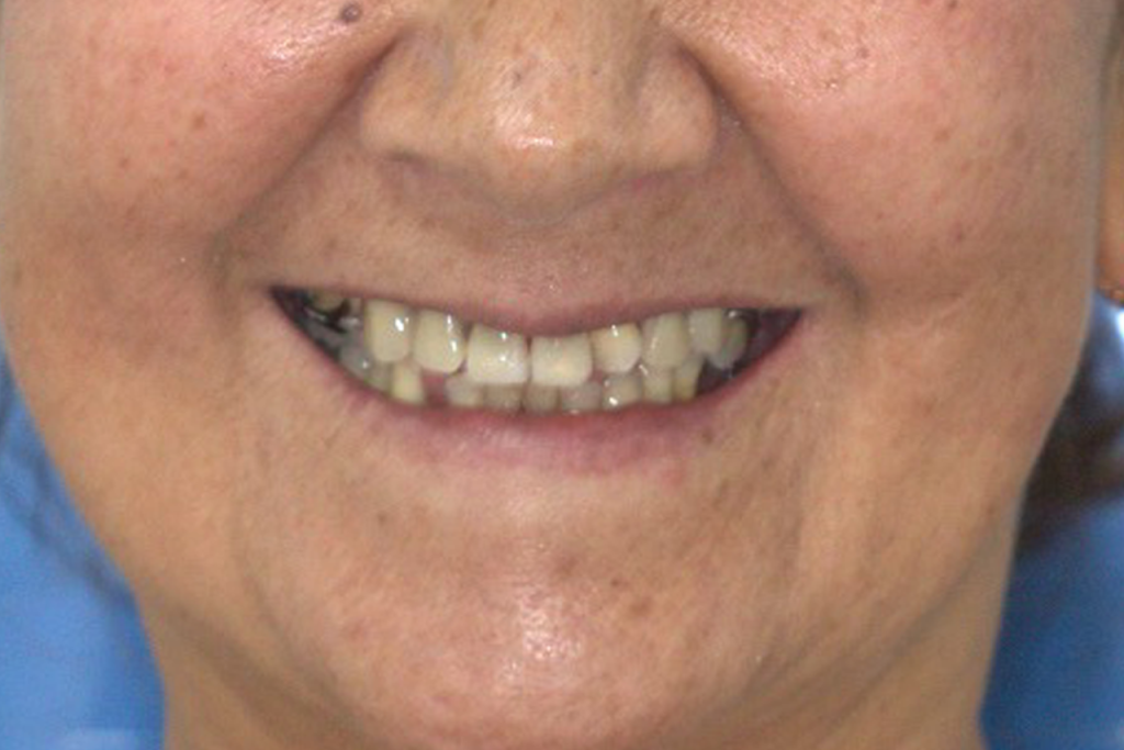 Paciente que no estaba agusto con su sonrisa, decidimos hacer carillas en sector anterior y protesis con estructura metálica, a raíz que es un paciente periodontal.